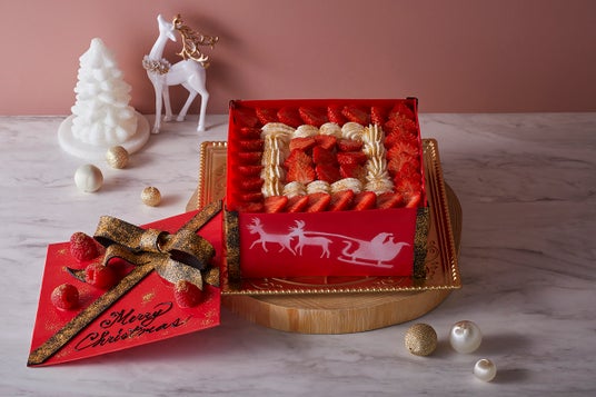 華やかな赤色のプレゼントの中に、優しいくちどけの生クリームとスポンジにフレッシュ苺を何層にも重ねた贅沢なショートケーキを詰め込みました。ボックスを開けるワクワク感がクリスマスをより一層盛り上げてくれる一品です。