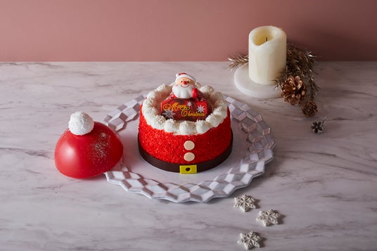 北海道産の生クリームとフレッシュ苺の酸味がマッチした、どの世代にもお楽しみいただけるショートケーキ。サンタクロースをモチーフにしたデザインには、チョコレートでできた帽子の中からサンタクロースが登場するシェフの遊び心が光る仕掛けも。