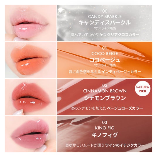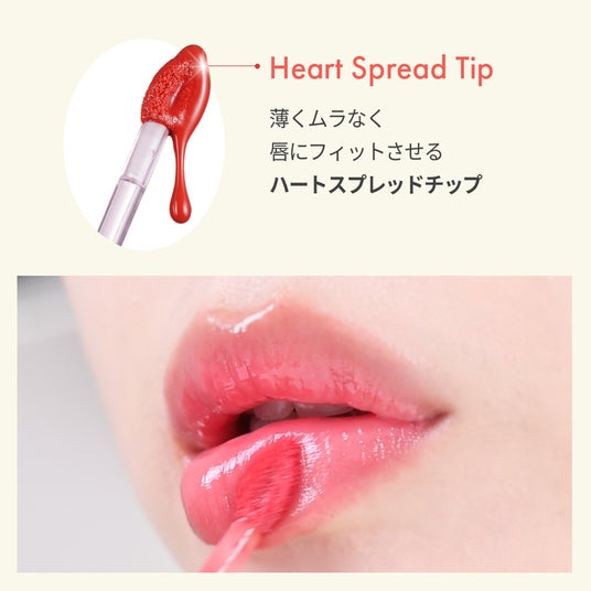 薄く均一に密着するみずみずしいテクスチャーで、クリアな光沢感が長続きします。カラーを組み合わせるのもおすすめで、唇全体に淡いカラーを塗り、唇の内側に濃いカラーを重ねることでよりぷっくりした立体感を演出します。