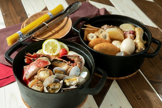 また、お料理には、バラエティ豊かな鍋メニューが登場。あっさりとした味わいのシェフが作る関西風おでんや、伊勢海老(外国産)と魚介類、野菜をたっぷり使用し、コクと旨みが詰まった贅沢なブイヤベースなどをアウトドアらしいダッチオーブンでご提供いたします。ホットワインや日本酒熱燗、焼酎お湯割りなどのホットドリンクもラインナップ。身体の中からも温まる、あったかメニューです。