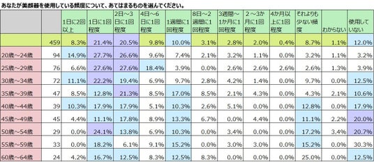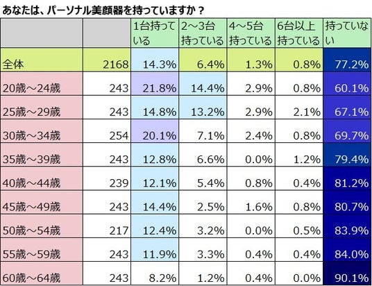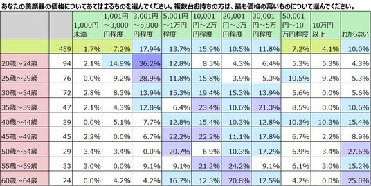 パーソナル美顔器の所有率、20代前半で約4割 60代前半で約1割。価格は高額化傾向、美顔器の効果への満足度は価格とリンク