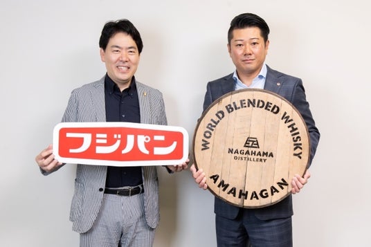 左 株式会社リカーマウンテン 代表取締役社長 伊藤啓氏右 フジパン株式会社西春工場長 山下洋文