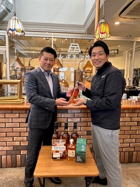 長濱蒸溜所でのウイスキー贈呈式 長浜浪漫ビール株式会社 取締役営業本部長 今井洋一氏