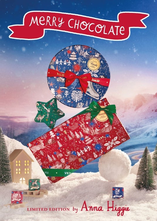 伝統的な手法とデジタル技術を組み合わせて生み出される彼女のイラストが冬の風景を生命に満ちたものに変え、ホリデーギフトに詰め込まれたチョコレートを魔法の世界への扉に変えていきます。