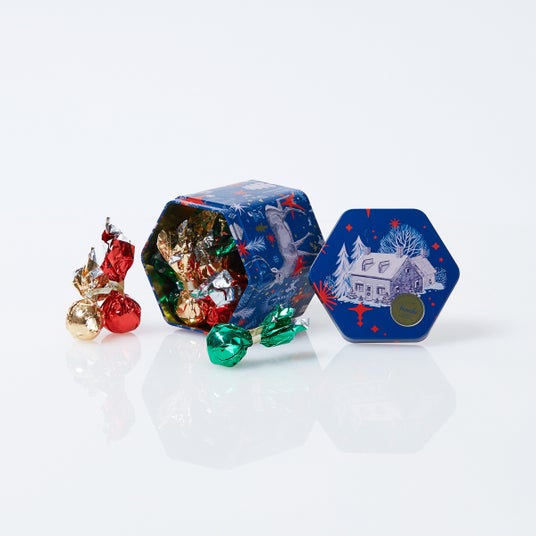 きらめく彗星をイメージしたチョコレート「コメッツ」が3色入っています。食べ終わったら、小物入れとしてもお使いいただけるクリスマスらしいデザインです。