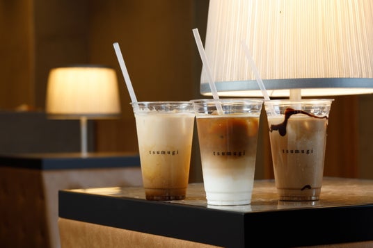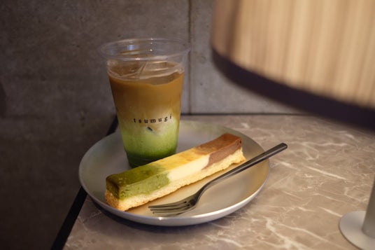 tsumugi cafeオープン時からの看板メニュー ・グリーンティーラテプレッソ ・グリーンティーマーブルチーズケーキ