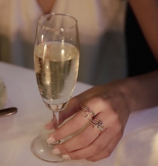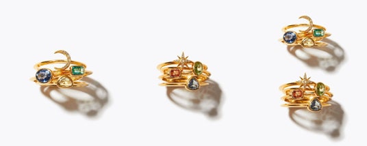 眩い光を纏う、色とりどりのカラーストーン。ホワイトダイヤモンドで象った、夜空に輝く月や星をかけ合わせた、絢爛に煌めくクリスマス限定の一点ものリング。