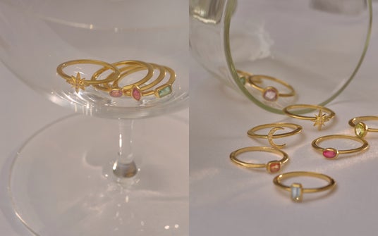 今年のクリスマスを彩るのは、色彩豊かなカラーストーンにホワイトダイヤモンドの星や月を添えた、リングセットやピアス、イヤーカフの一点もの。