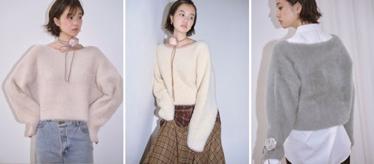 ふんわりした毛足が特徴のファーニット。今年らしいローズチョーカーとセットです。首元に巻いて、チョーカーとしてはもちろん、頭に巻いてヘアアクセサリーとしてもご使用いただけます。ニットは、程よい長さとふんわりとした柔らかいの毛並みの糸を使用し、柔らかい印象のコーディネートに仕上がります。