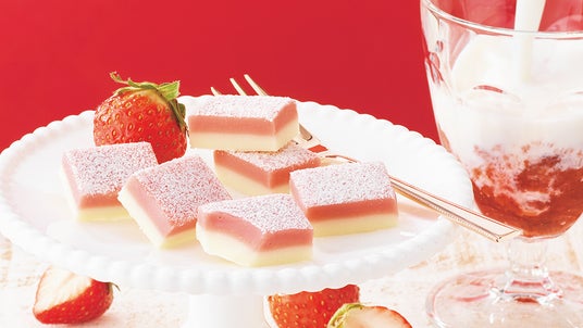 いちごの甘酸っぱい味わいを生かしたストロベリーチョコレートと、北海道産ミルクのコク豊かなホワイトチョコレートを2層に重ねた、色合いもかわいらしい生チョコレートです。いちごとミルク、2層のチョコレートがとけ合う絶妙な味わいをお楽しみください。