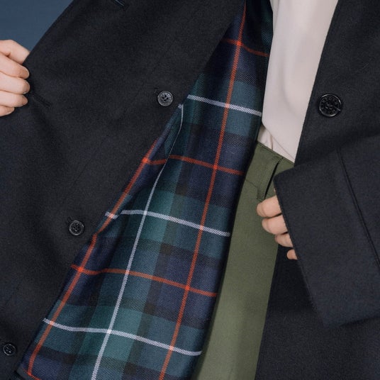 11月6日(水)より<J&M デヴィッドソン>のブランド創立40周年を記念し、英国を代表するアウターウェアブランド<マッキントッシュ>とコラボレーションした限定コートを発売します。マッキントッシュの圧倒的人気を誇る、Aラインのドロップショルダーコート「HUMBIE / ハンビー」をベースに、J&M デヴィッドソンならではのアレンジを加え、40周年を記念するラグジュアリーな1着が完成しました。英国を拠点に高いクラフツマンシップを共通とする2ブランドがタッグを組み、丁寧に仕立てられたコートには、襟元のデザインや内側のライニングなど、随所にこだわりディティールが散りばめられています。