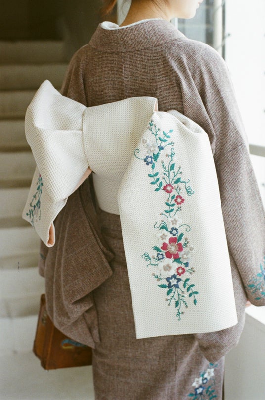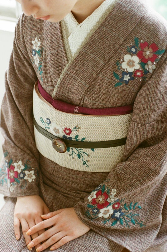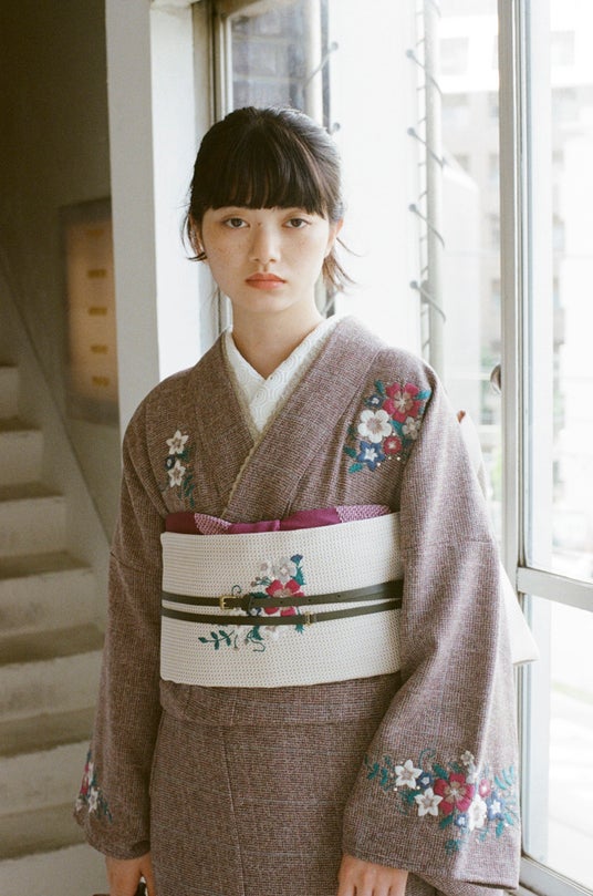 この袋帯は、”memorableきもの classic”とお揃いの刺繍が施されており、ふりそで以外にも無地のきものや小紋、紬と合わせることで、カジュアルな着こなしを楽しんでいただけます。