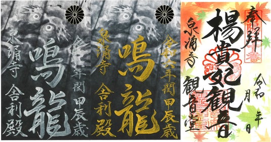 左2枚:舎利殿鳴き龍限定御朱印、右:秋季限定御朱印