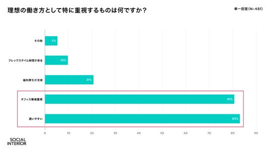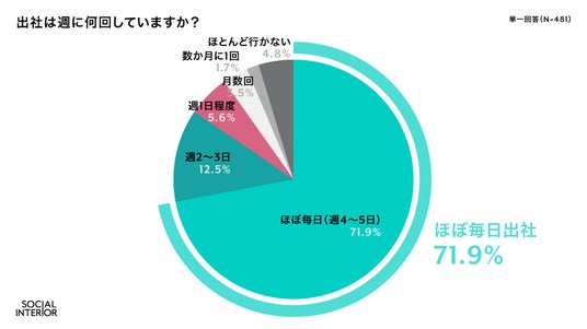 「よいものが、循環する社会へ」をミッションに掲げ、家具・家電の通販サービスとオフィスの構築支援、家具什器受発注プラットフォームを展開する株式会社ソーシャルインテリア(東京都港区、代表取締役:町野 健、以下ソーシャルインテリア)は、2024年9月に25歳以上の男女481名を対象に 「オフィスと働き方に関する意識調査」を実施しました。