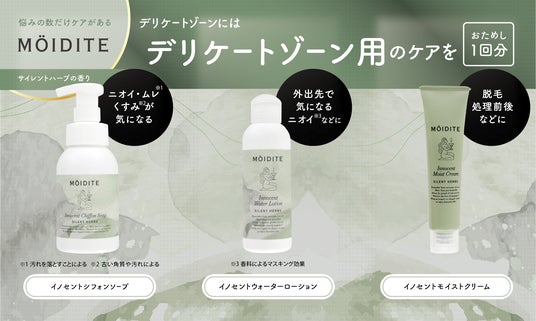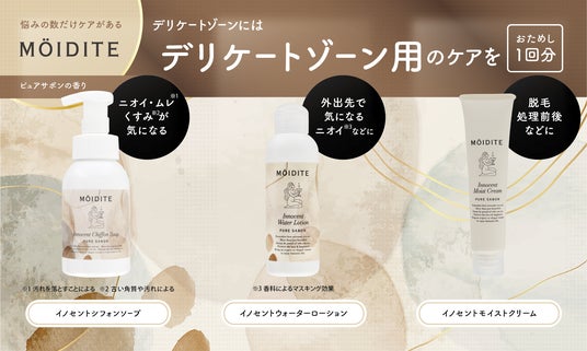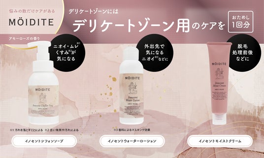 株式会社D-Neeコスメティック(所在地:神奈川県横浜市、代表:中谷大)が展開するデリケートゾーンケア専用ブランド『MOIDITE(モアディーテ)』より、手軽にフェムケアを試せるソープ・ローション・クリームが1つになったお試し1回分の「モアディーテ トライアル3点セット」を2024年10月28日より限定販売を開始いたします。