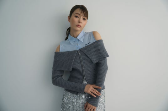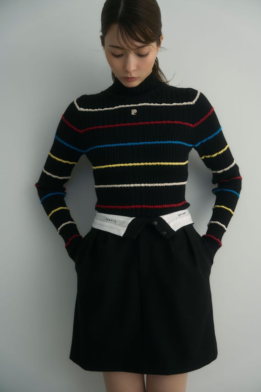 トレンドを意識したシャツコンビのニットトップスやマーベルトスカートなど、ピエール・カルダンのレトロモダンなテイストをFRAYI.Dらしいデザインに落とし込んだコレクションを展開
