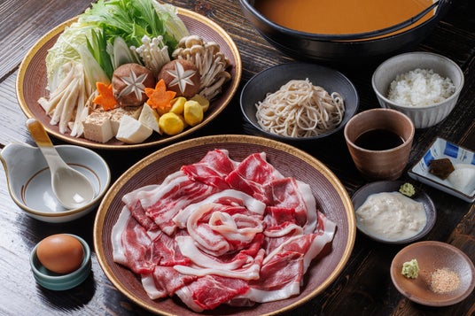 十割蕎麦とぼたん鍋を同時に楽しめるぼたん鍋コースは贅沢の極み。
