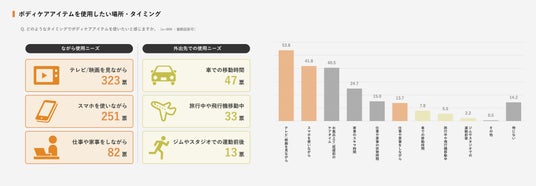 セルフボディケアアイテムを使用したい場所・タイミングは様々