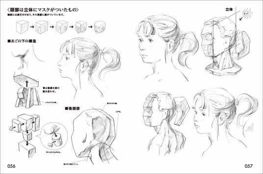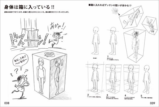 「写真をトレースしても画力はつかない」「身体は箱に入っている」「頭部は立体にマスクがついたもの」など、コミカルなイラストとキャラクターともに、楽しく学びましょう!