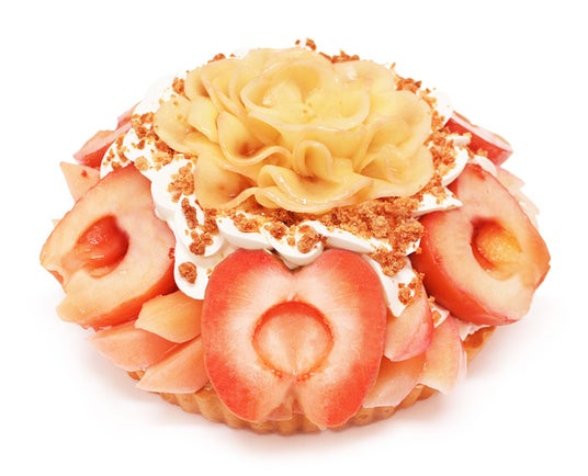 香り良く柔らかい食感で、程よい酸味の秋田県横手市産のりんご「紅の夢」をオーブンで丁寧に焼き上げ、大胆に飾りつけました。食感の良いチーズクラムと共に、この時期に美味しいりんごを楽しめるケーキです。