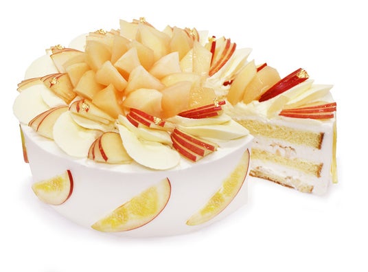 密がふんだんに入った、甘く香りが良い山形県産のりんご「高徳」をコンポートし、ふわふわのスポンジ、生クリームと共に飾りつけました。コンポートとフレッシュの食感を一度に楽しめるケーキです。