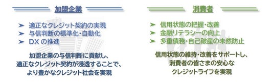 ⇒クレジット会社の与信判断が正確かつ迅速に行なわれることを通じ、消費者の皆さまはクレジットを適切かつ速やかに利用できます。