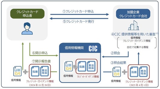 加盟企業は、「クレジット・ガイダンス」を利用申込のうえ、CICに照会依頼をしていただくことで、信用情報とあわせて「クレジット・ガイダンス情報」の回答を受けることができます。