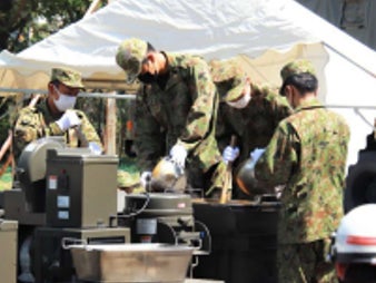 御殿場の新鮮な食材を使った陸上自衛隊・板妻駐屯地部隊による豚汁の炊き出しを先着150名様に振舞います。