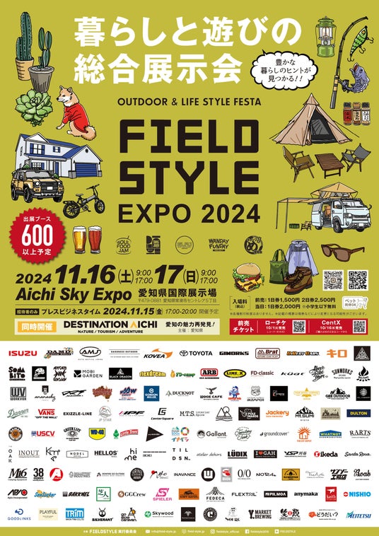 FIELDSTYLE実行委員会(代表 清水俊英/FIELDSTYLE株式会社 愛知県岡崎市)は、2024年11月15日(金)~17日(日)にAICHI SKY EXPO 愛知県国際展示場で「FIELDSTYLE EXPO 2024」を開催します。