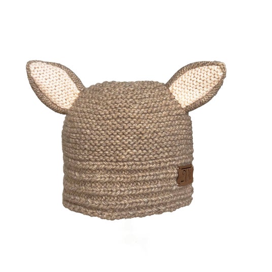 コジカニットワッチかぶれば小鹿に早変わり。小鹿らしいぴんと立った愛らしい小さな耳が付いています。(角はありません)