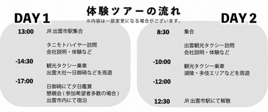 そして、次の取り組みとして、観光地ドライバーに出雲を案内してもらいながら、タクシードライバーという職業に実際に触れてもらう1泊2日の職業体験ツアーを実施します。