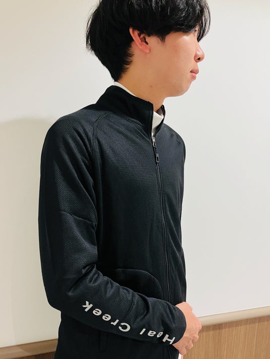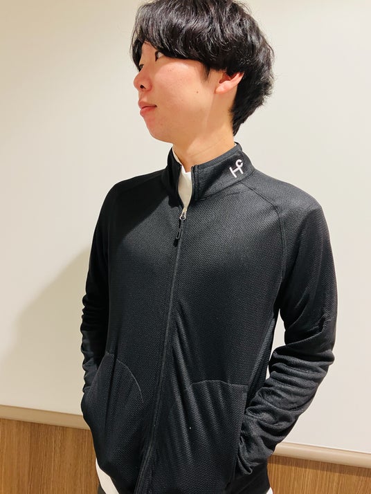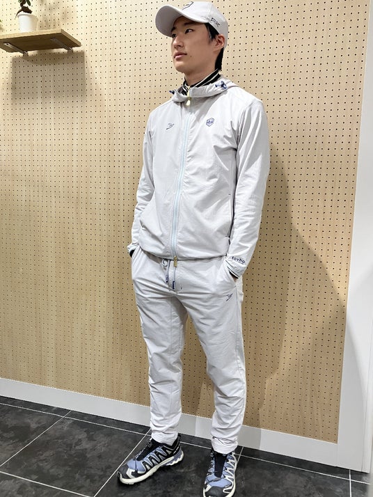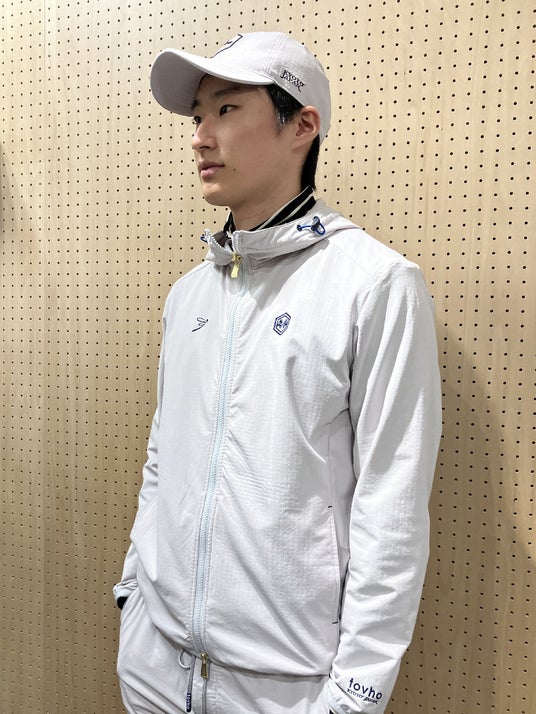 オリジナルの新たな機能素材「TACTEEM」を採用。高い保温効果を発揮し朝夕の冷えにも快適です。さらにドビー組織を使ってヘリンボーンの折柄で表現し深みある表情になっています。軽くてストレスなく快適なプレーができます。同素材のボトムスでセットアップも楽しめます。