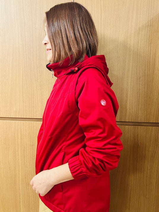 表地の先染めチェック素材は撥水とストレッチ機能を備えたオリジナル素材。中綿はソフトでボリューム感のあるボール綿を採用。後身頃の裏地にはヒートナビ裏地を採用し保温性も兼ね備えたアイテムです。