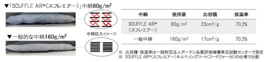 ■機能性中綿「SOUFFLE AIR(R)(スフレエアー)」特長