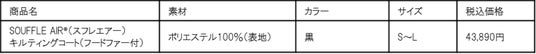 『SOUFFLE AIR(スフレエアー(R))キルティングコート(フードファー付)』参考資料