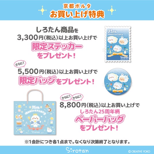 株式会社クリエイティブヨーコ(本社:長野県長野市 代表取締役社長:北原 武幸)は、ポップアップストア「しろたんふんわりストア」を、11月1日(金)より京都駅前地下街ポルタ、11月6日(水)よりJR大宮駅2F東西連絡通路にて期間限定でオープンし、しろたん×サンリオキャラクターズコラボ商品を数量限定で販売します。