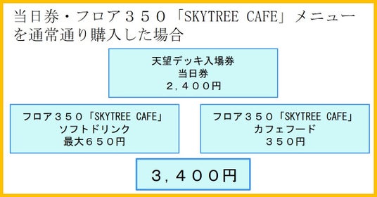 本チケットは、天望デッキ入場券に、フロア350「SKYTREE CAFE」にて販売しているソフトドリンクとカフェフードがセットとなっており、当日券よりも最大700円お得に爽快な朝の絶景を堪能できます。朝の時間帯の大人料金のみの販売で、ご友人との旅行やご夫婦でおでかけなど、1日のはじまりを気軽にゆったりと過ごせる大人のためのチケットです。さらに、海外のお客さまにもお楽しみいただけるよう、英語サイトにおいても販売します。