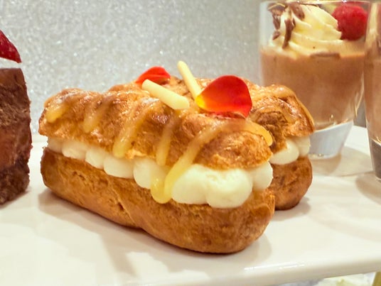 シャインマスカットのタルト、苺のチョコレートショートケーキ、 チョコレートプリン、チョコレートマカロン、ボンボンチョコレート、ベイクドチーズケーキ、チーズエクレア、パルメザンチーズパウンドケーキ、クレメダンジュ(クリームチーズケーキ)