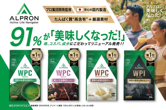 “美味しさを追求した新定番”「アルプロン」シリーズは、一食約30gあたり約20gのタンパク質高含有に加え、本当に必要な成分を厳選、泡立ちや粉っぽさを抑え、14種類から選べる豊富なフレーバーを展開するなど、開発に2年以上かけ、とにかく納得いく美味しさを実現できるまで徹底的にこだわりました。日本プロテイン協会所属のタンパク質のスペシャリスト「プロテインマイスター」を対象に行なったアンケート調査では、91%が美味しくなったと評価※した当社の自信作です。