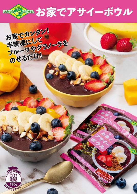 この度株式会社フルッタフルッタ(所在地:東京都千代田区 社長:長澤 誠、以下「当社」)のロングセラー商品である冷凍ミックスベース「お家でアサイーボウル(R)」が本年大幅に売上を伸ばしたことや、アサイーボウル自体の注目が高まっていることを受け、日経トレンディの『2024年ヒット商品ベスト30』に“アサイーボウル“が23位に選出されました。