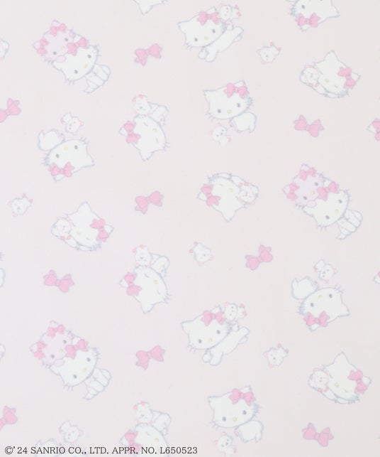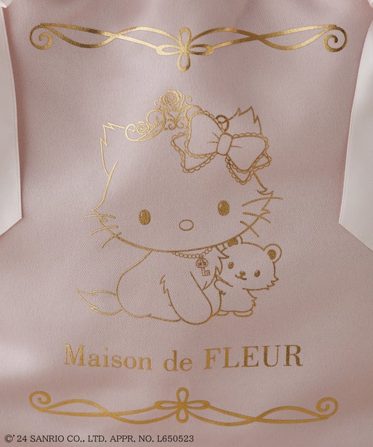 Maison de FLEURの代表的なアイテム『ダブルリボントートバッグ』には、ティアラを付けたチャーミーキティを箔プリント。バッグ本体はピンクベージュ、サイドのリボンは淡いピンクを組み合わせ柔らかなトーンで可愛らしく仕上げました。