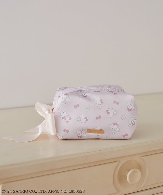 そのほか、チャーミーキティの妹ハニーキュートやジャンガリアンハムスターのシュガー、リボンを総柄プリントしたスクエアポーチもラインアップしております。