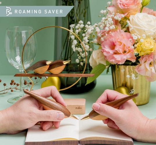 Wings of PenシリーズWings of Penシリーズのペアペンをご紹介します。このペンは、ウォールナットとブナ材を組み合わせて表現された美しい鳥のデザインが特徴です。鳥のくちばしは真鍮製のペン先で丁寧に再現されており、見た目の美しさと実用性を兼ね備えています。ボールペン芯(黒)は交換可能で、長くご愛用いただける一品です。