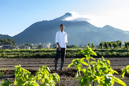 『ENOWA YUFUIN』では「Farm to Table(農場からレストラン)」を掲げ、エグゼクティブ・シェフ Tashiのもと、最高な食材で最高な料理をお客様にお届けしようと、あえて決まったメニューを設けていません。Tashiが毎日ファームに赴き、採れた一番の食材でメニューを決めて極上の一皿を創りあげます。