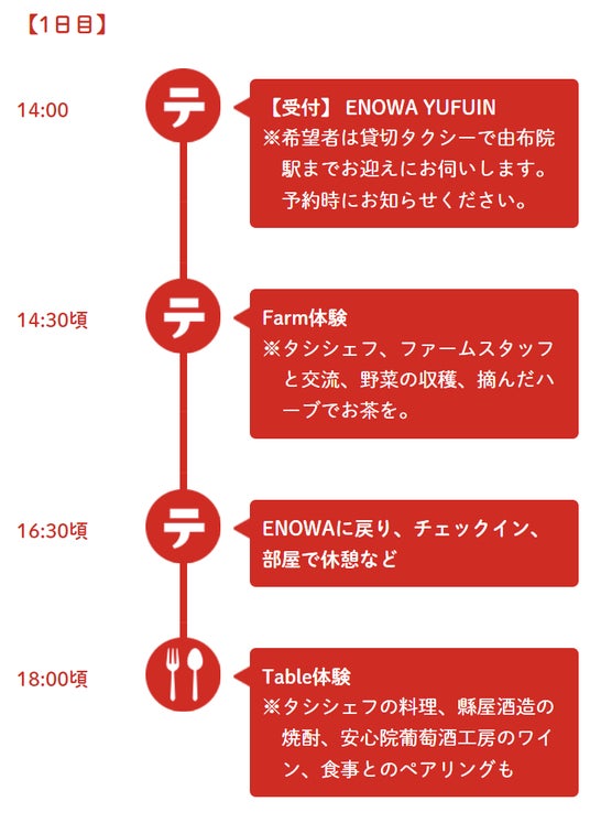『ENOWA YUFUIN』では大分県由布市、宇佐市、また地域事業者と連携し、大分の食や生産者との交流を通して、地産地消を体感していただく1泊2日3食の大分ガストロノミー・モニターツアーを実施します。