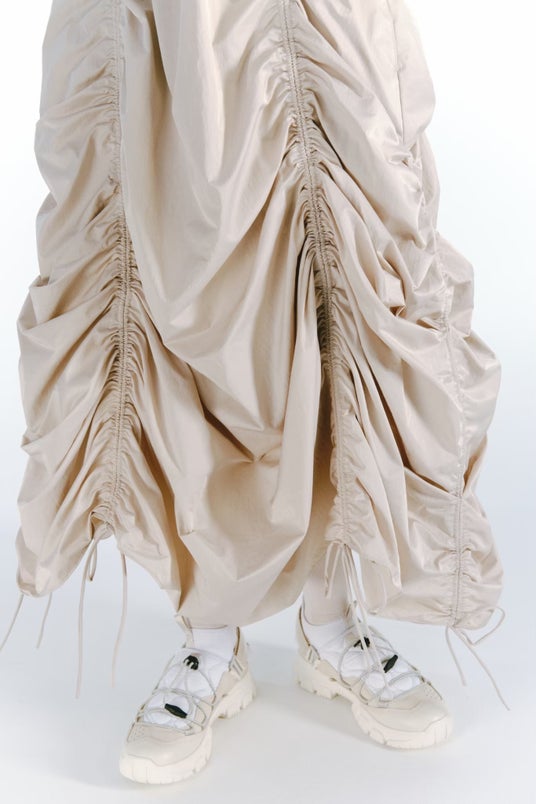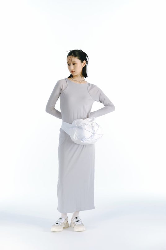 オニオンキルティングをカバーとして配し、ドローコードでホールドしてテック感のあるデザインに。