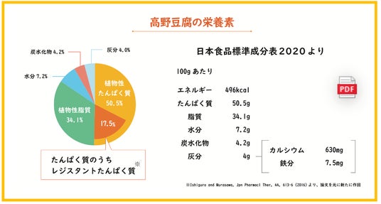 ※「高野豆腐」の名称は、食品表示基準では「凍り豆腐」と定められていますが、一般的には「こうや豆腐」や「しみ豆腐」の呼び名でも親しまれています。