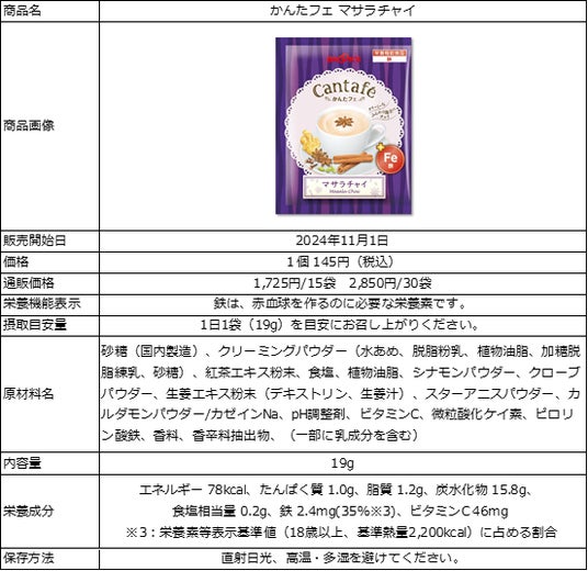 株式会社ブルックス(本社:神奈川県横浜市、代表取締役社長:小川裕子)は、「いつでもどこでもかんたんカフェ気分」をコンセプトとした粉末飲料「かんたフェ」シリーズより、新商品、栄養機能食品『マサラチャイ』を2024年11月1日より発売いたします。