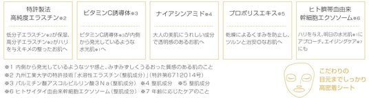 「美容成分の浸透に最も適した厚さと繊維の細かさ」、「目の際まで貼れるカッティング」、そして「シルクのような心地よい手触り」を追求した特製のシートです。