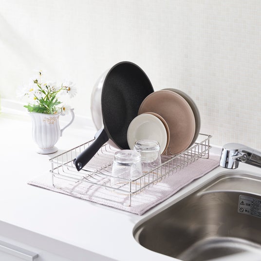 ステンレス水切り(浅型)フライパンものせられる浅型バスケットタイプの水切り。